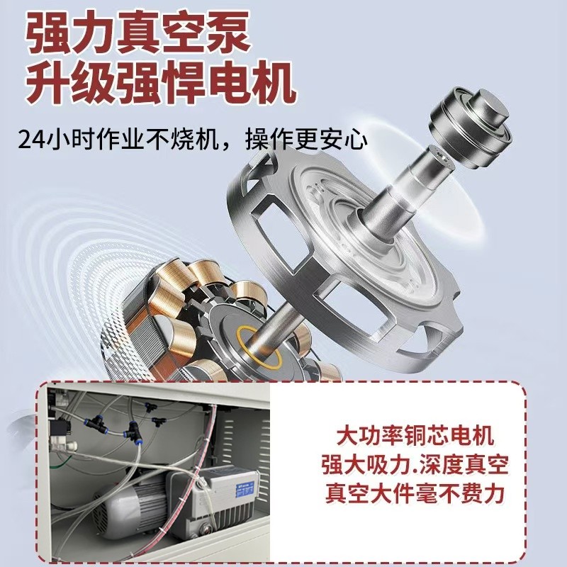 - 內抽式:有密封的真空室,通常由不銹鋼制成,真空室大小決定了可包裝產品的尺寸范圍。配備真空泵、真空表、熱封裝置等,結構相對復雜。