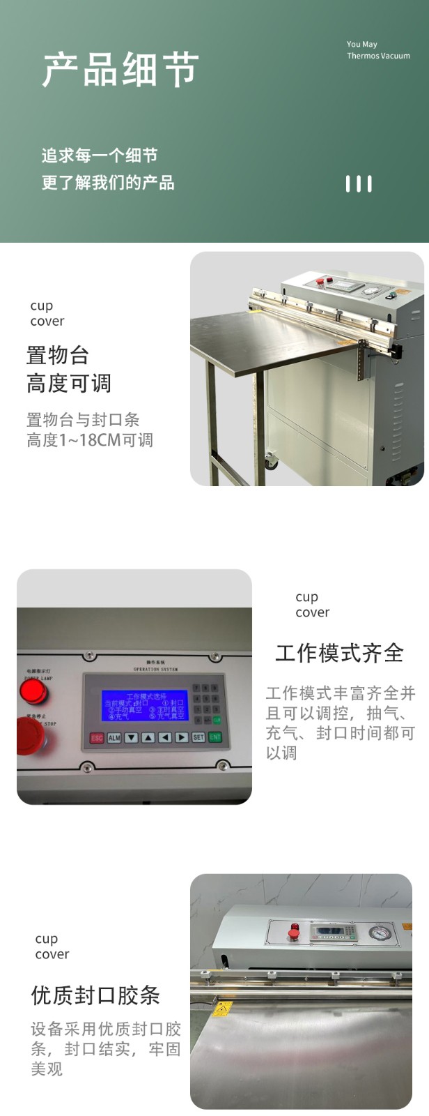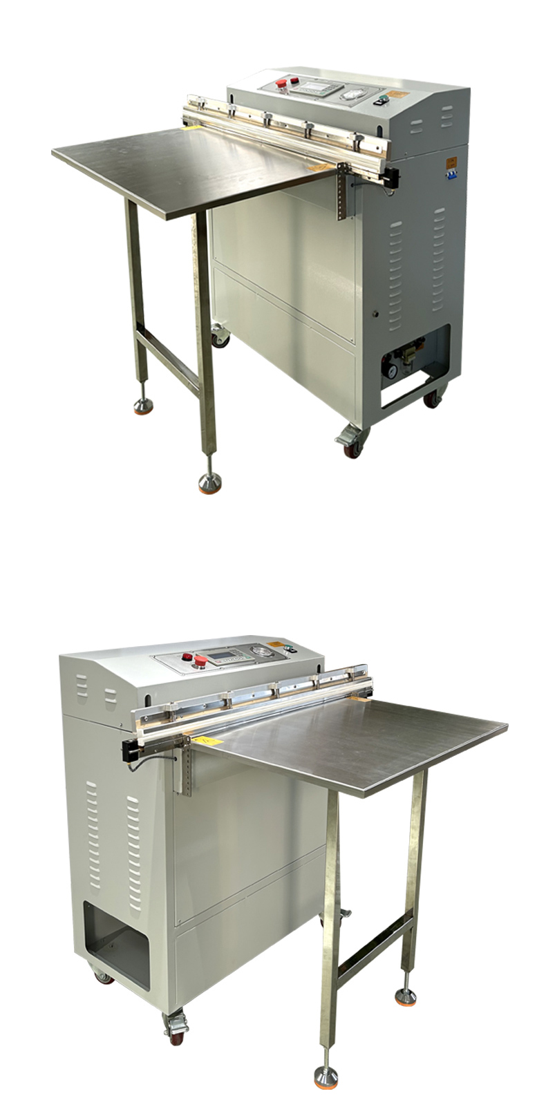 - 外抽式:一般采用立式結構,無密封真空室,由工作臺、抽氣裝置、封口裝置和控制系統等組成,結構較為簡單,占地面積小。