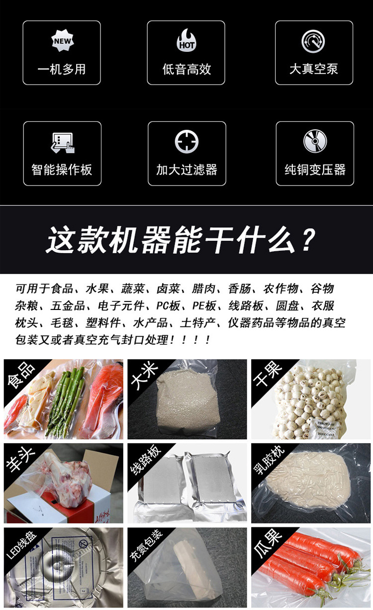 - 抽氣速度和真空度:對于對真空度要求較高或易氧化的物品,應選擇抽氣速度快、極限真空度高的機型,以保證包裝效果和產品質量。例如,包裝茶葉、海鮮等產品,需要較高的真空度來延長其保質期。