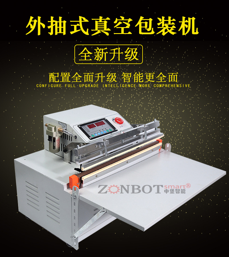 電動外抽真空包裝機通過電動真空泵產生吸力,利用吸嘴與包裝袋連接,將包裝袋內的空氣抽出,使包裝袋內形成真空狀態,降低內部壓力