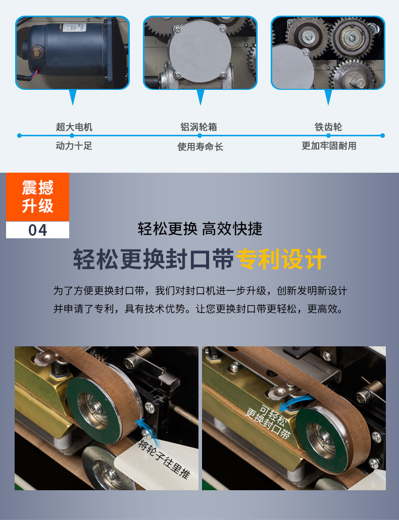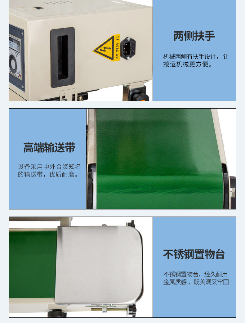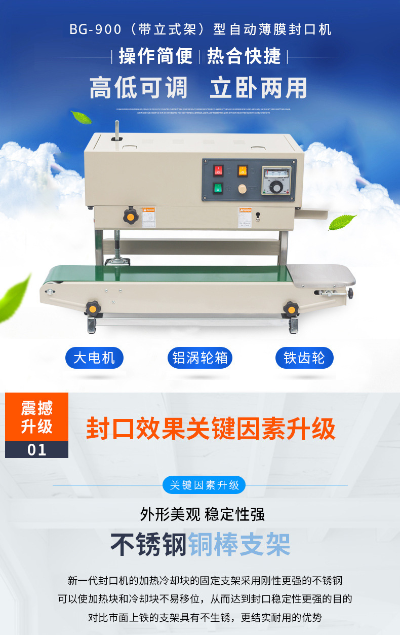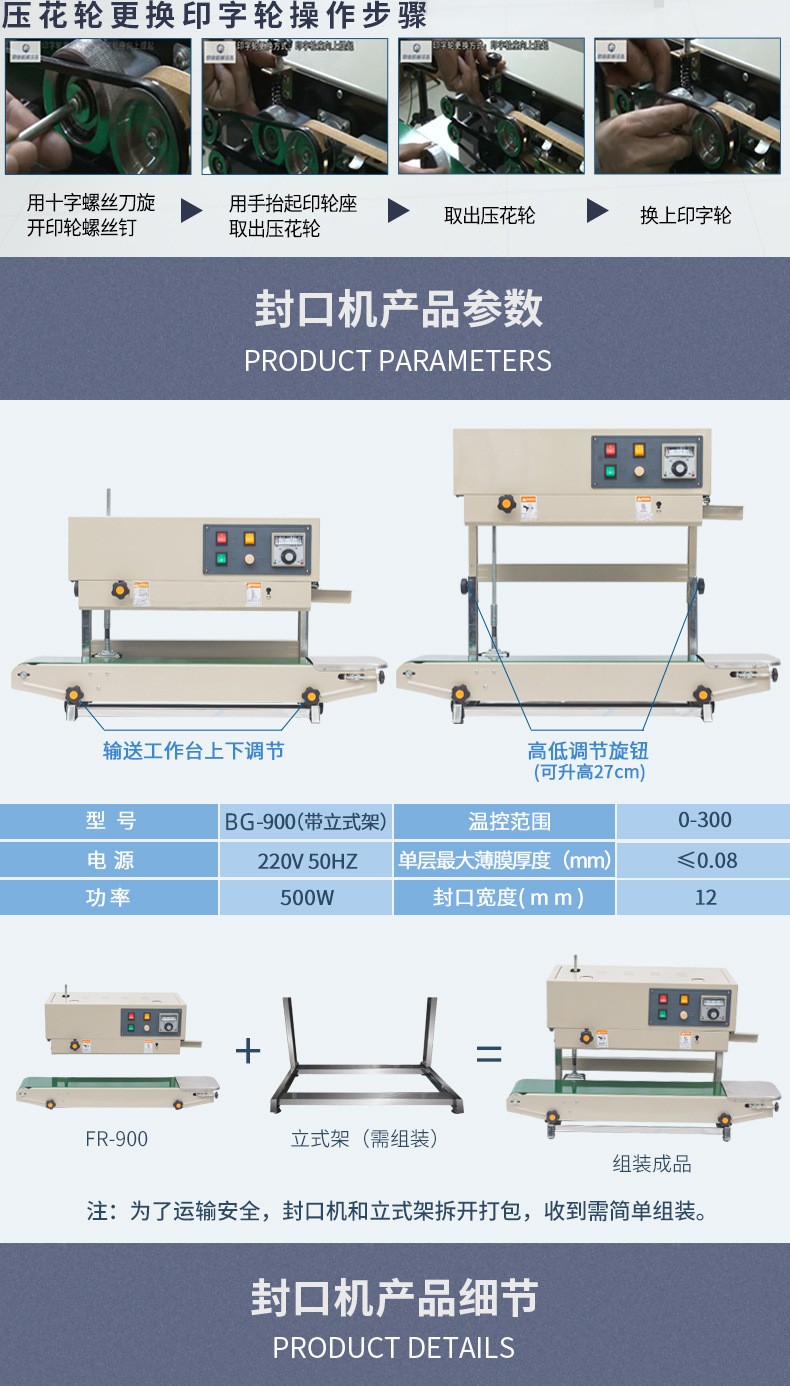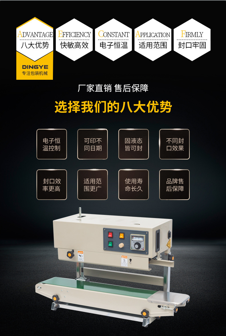 立式封口機可用于各種尺寸的包裝袋,尤其是大型包裝袋的封口作業(yè),如大米、面粉、狗糧等大包裝產(chǎn)品,也適用于液體、粉末、重物等不同類型物料的包裝封口