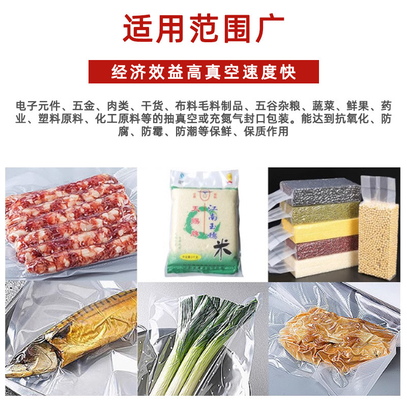 與普通立式外抽真空包裝機類似,可升降立式外抽真空包裝機也是通過抽氣嘴放入被包裝物的包裝袋內,啟動真空泵抽出空氣,達到預定真空度后退出抽氣嘴,最后利用封口裝置完成封口,實現真空包裝。在包裝過程中,可升降機構能夠根據包裝物的高度調整工作臺或輸送臺的位置,確保包裝操作的順利進行。部分機型還可在抽真空后充入氮氣等惰性氣體,以滿足不同產品的包裝需求。