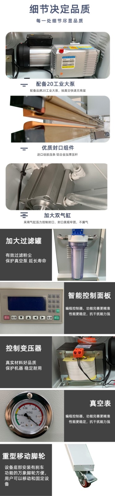真空系統:主要由真空泵、真空管道、真空閥門等組成,用于抽出包裝袋內的空氣,形成真空環境。