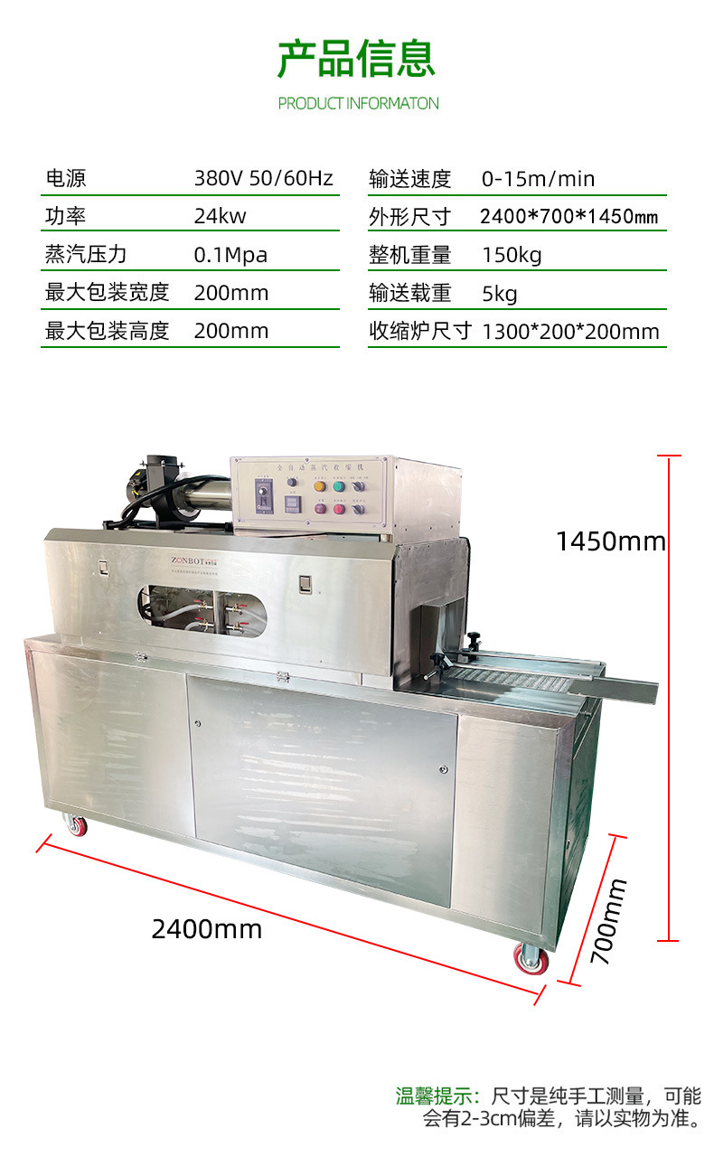 總之,蒸汽收縮機以其獨特的優勢,為各行業的產品包裝提供了高效、優質的解決方案。