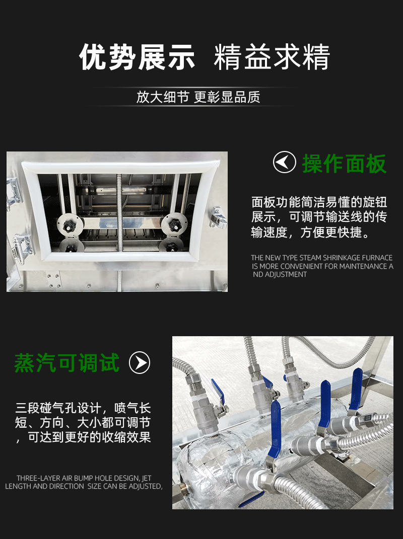- 控制系統:用于調節蒸汽溫度、輸送速度等參數,以滿足不同產品的包裝需求。