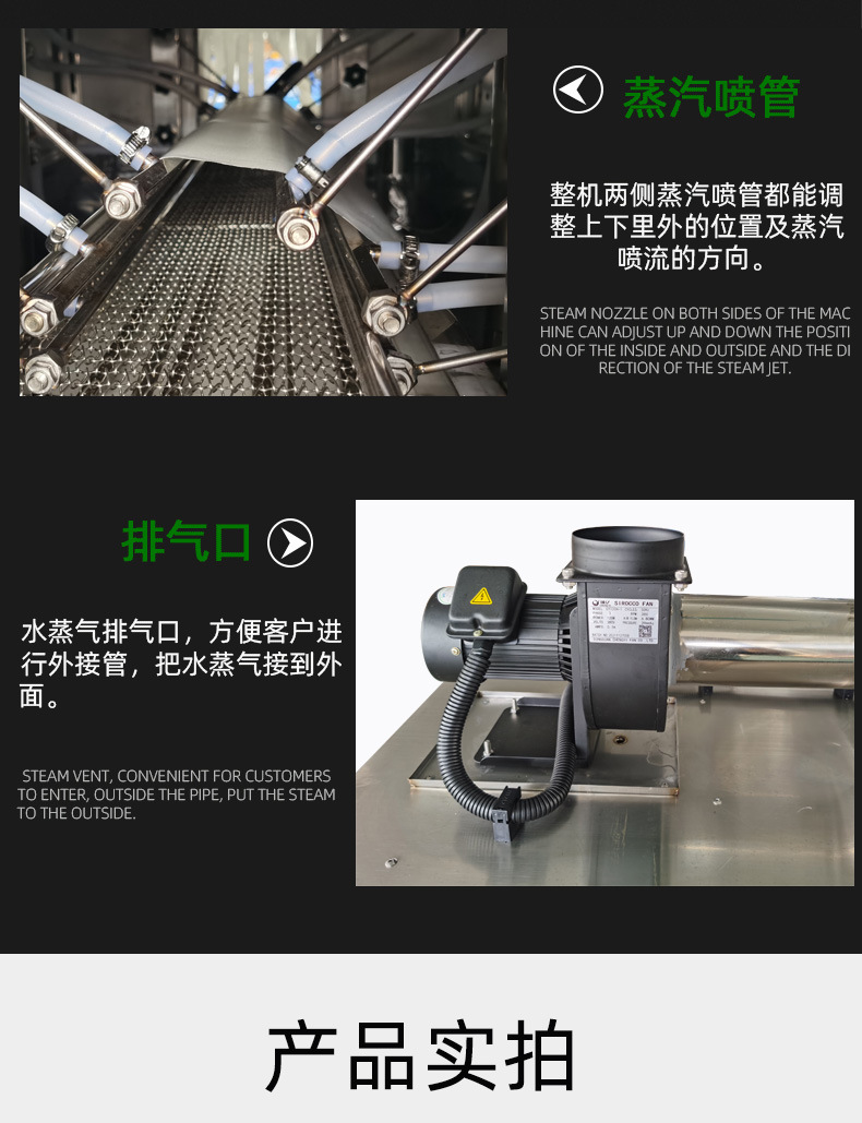 - 收縮效果卓越:利用蒸汽的均勻加熱,使包裝材料緊密貼合產品,外觀美觀,同時提供良好的保護。