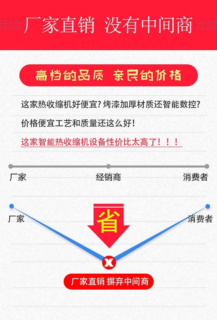 - 負責將待包裝物品平穩地輸送通過各個工作區域,如套膜區、加熱區等。輸送帶的速度通常是可調節的,以便適應不同的包裝速度要求。