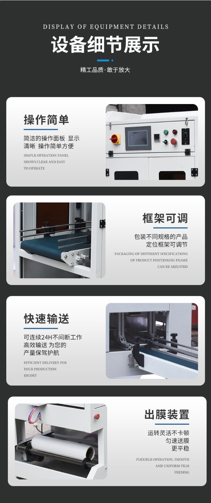 • 適應(yīng)性與靈活性:這種包裝機對產(chǎn)品的形狀、尺寸和包裝材料的適應(yīng)性較強。它可以通過簡單地調(diào)整機器參數(shù)來包裝各種形狀(如正方體、長方體、圓柱體甚至不規(guī)則形狀)和不同尺寸的產(chǎn)品。同時,它能夠兼容多種包裝材料,包括不同厚度、材質(zhì)的塑料薄膜等。相比一些專用包裝機,它的靈活性更高,能夠滿足企業(yè)多樣化的包裝需求。