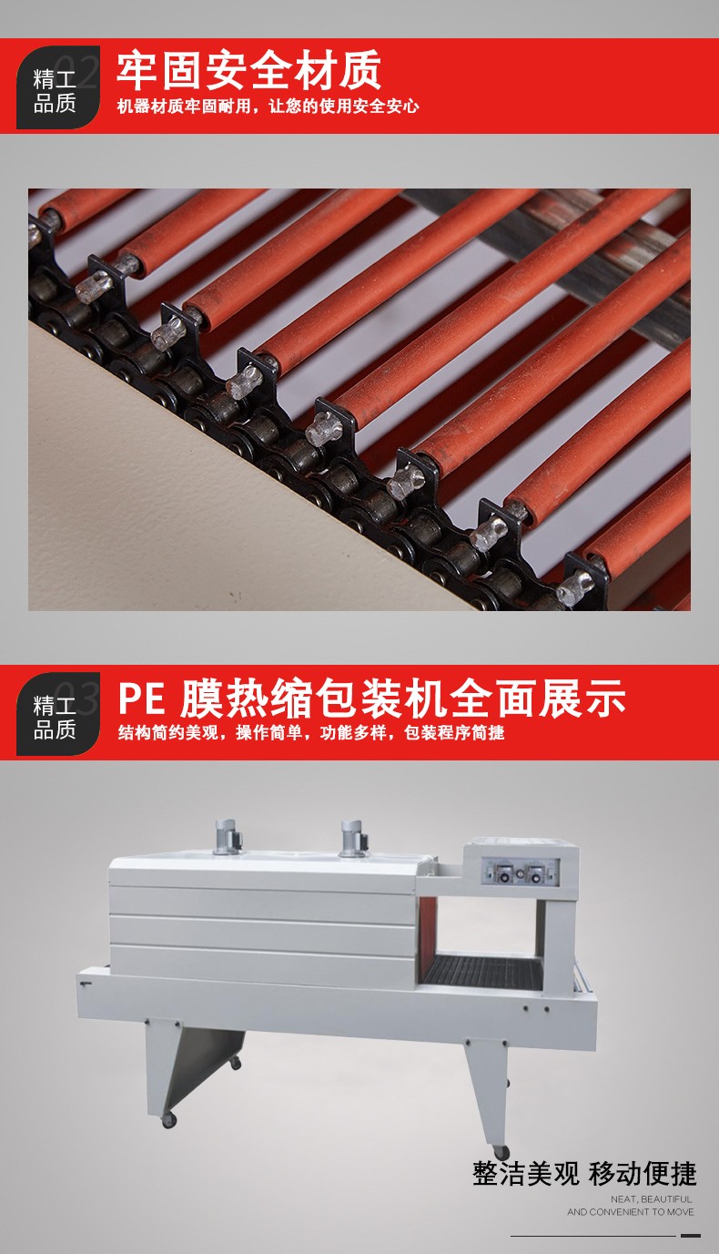其核心工作原理是熱收縮。機(jī)器內(nèi)部設(shè)有加熱裝置,通常是加熱管,能夠?qū)⒖諝饧訜岬揭欢ǖ臏囟取.?dāng) PE 薄膜包裹產(chǎn)品后,通過(guò)輸送帶將產(chǎn)品輸送到加熱區(qū)域。在加熱區(qū)域,熱空氣均勻地吹到 PE 薄膜上,使薄膜分子鏈在熱能的作用下開(kāi)始運(yùn)動(dòng),分子間的間距減小,從而導(dǎo)致薄膜收縮。例如,當(dāng)溫度達(dá)到 PE 薄膜的收縮溫度范圍(一般在 120 - 180℃左右)時(shí),薄膜會(huì)迅速收縮,貼合在產(chǎn)品的表面。
