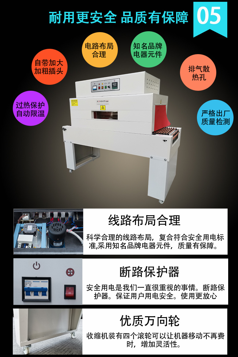 熱收縮機的工作原理很簡單,首先需要將物品放入機器內部,然后調整好收縮溫度、收縮時間和速度等參數,接下來就讓機器自動為你搞定一切吧!經過收縮處理的物品不僅外觀更加美觀,而且可以提高物品的耐壓、耐磨性能,延長物品的使用壽命。首先,在操作熱收縮機之前,一定要確保機器的電源已經插好,并且完好無損。其次,物品放入收縮機內部時,要確保物品表面干凈,沒有油污等雜物,以免影響收縮效果。此外,收縮機的溫度不要調得太高,以免損壞機器。最后,注意收縮過程中不要拉動物品,以免導致物品變形。