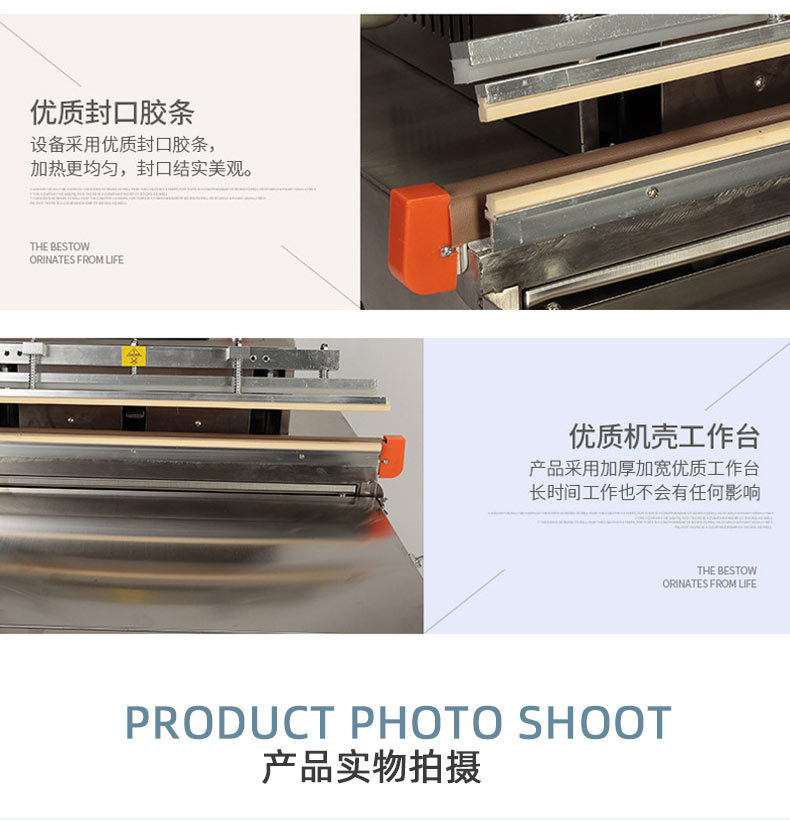 食品真空包裝機(jī)對香腸、肉制品、餅干等食品進(jìn)行真空包裝。經(jīng)過包裝后的食品可以防止霉變,保質(zhì)、保鮮而延長產(chǎn)品的儲(chǔ)存期限,只需按動(dòng)真空蓋可自動(dòng)完成抽真空、封口。