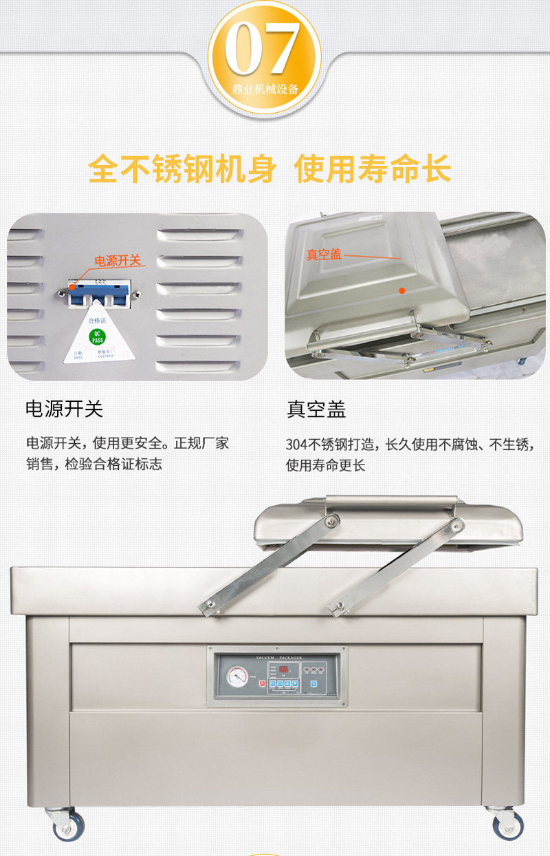 真空包裝機還有多種功能,例如,可以調節真空度、溫度等參數,以滿足不同食品的包裝需求。此外,真空包裝機還具有良好的抗氧化、防潮、防銹、防腐等性能,能夠有效延長食品的保質期,保障食品的安全。
