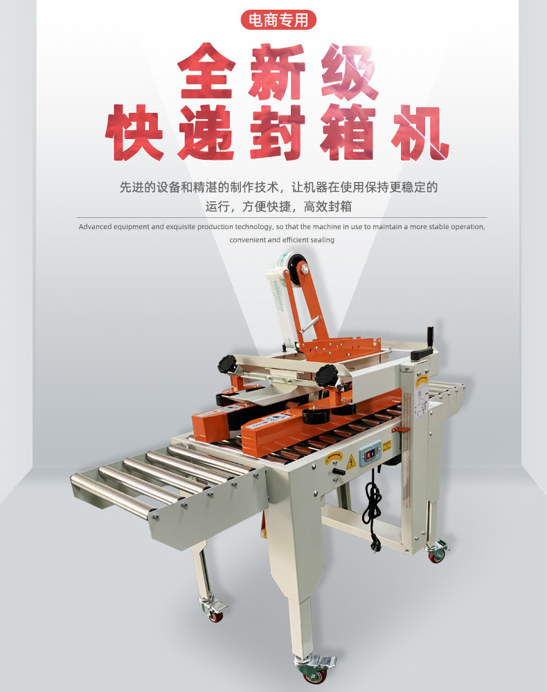封箱機,也稱為Case sealer machine,主要用于紙箱的封箱包裝。它們不僅適用于單機作業,也可以與流水線配套使用,是包裝流水線作業中不可或缺的設備。封箱機的功能包括自動折疊、粘合和封口紙箱,通過先進的感應和控制技術,能夠自動檢測和調整紙箱尺寸,按照設計要求進行折疊和封口操作,大大提高了包裝的效率和一致性,減少了人工操作的錯誤和勞動強度。
