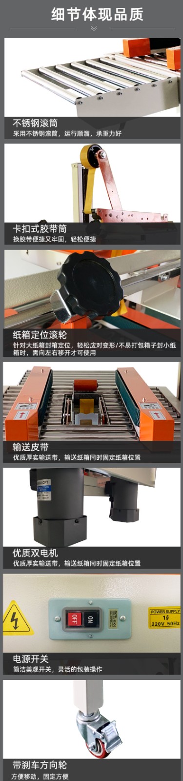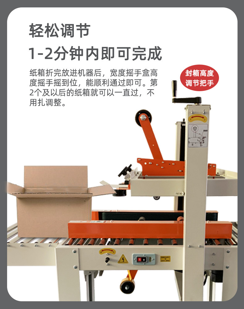 封箱機,也稱為Case sealer machine,主要用于紙箱的封箱包裝。它們不僅適用于單機作業,也可以與流水線配套使用,是包裝流水線作業中不可或缺的設備。封箱機的功能包括自動折疊、粘合和封口紙箱,通過先進的感應和控制技術,能夠自動檢測和調整紙箱尺寸,按照設計要求進行折疊和封口操作,大大提高了包裝的效率和一致性,減少了人工操作的錯誤和勞動強度。